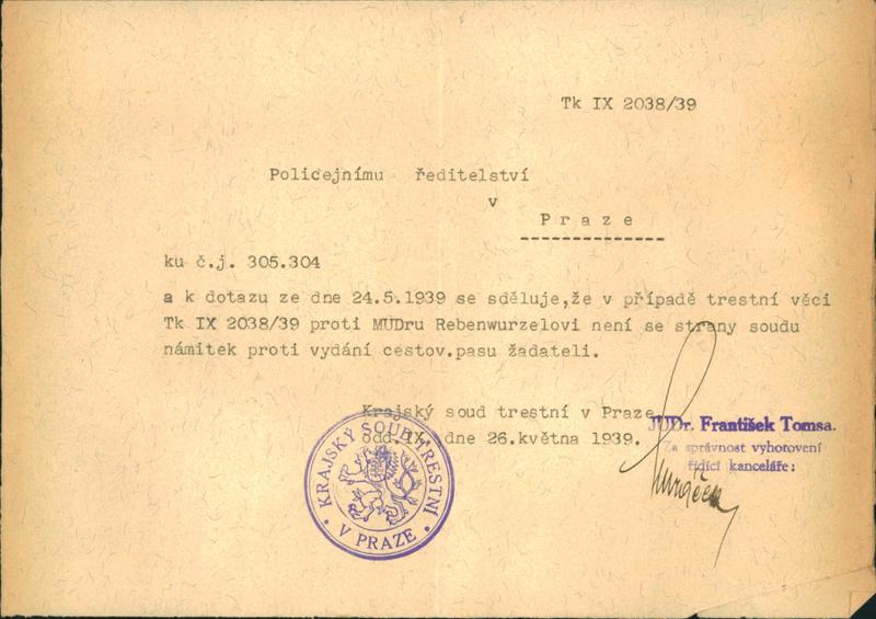 National archives Prague > Police Directorate Prague > 1941-1950 > R > Rebenwurzel František