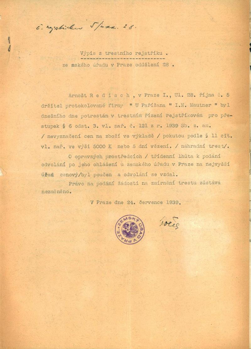National archives Prague > Police Directorate Prague > 1941-1950 > R > Redisch Arnošt
