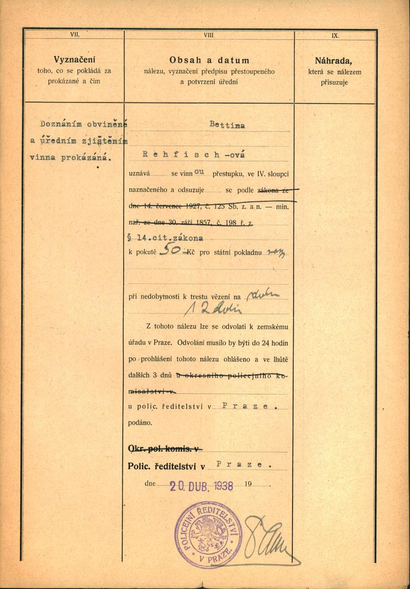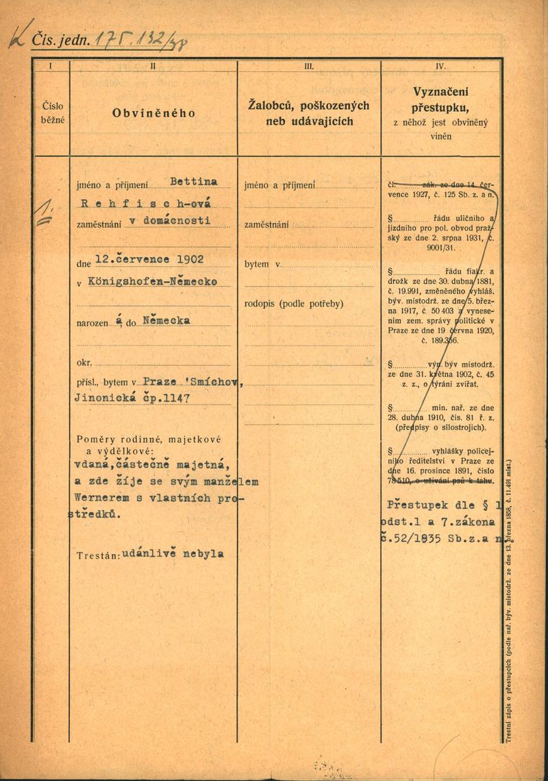 National archives Prague > Police Directorate Prague > 1941-1950 > R > Rehfischová Betina