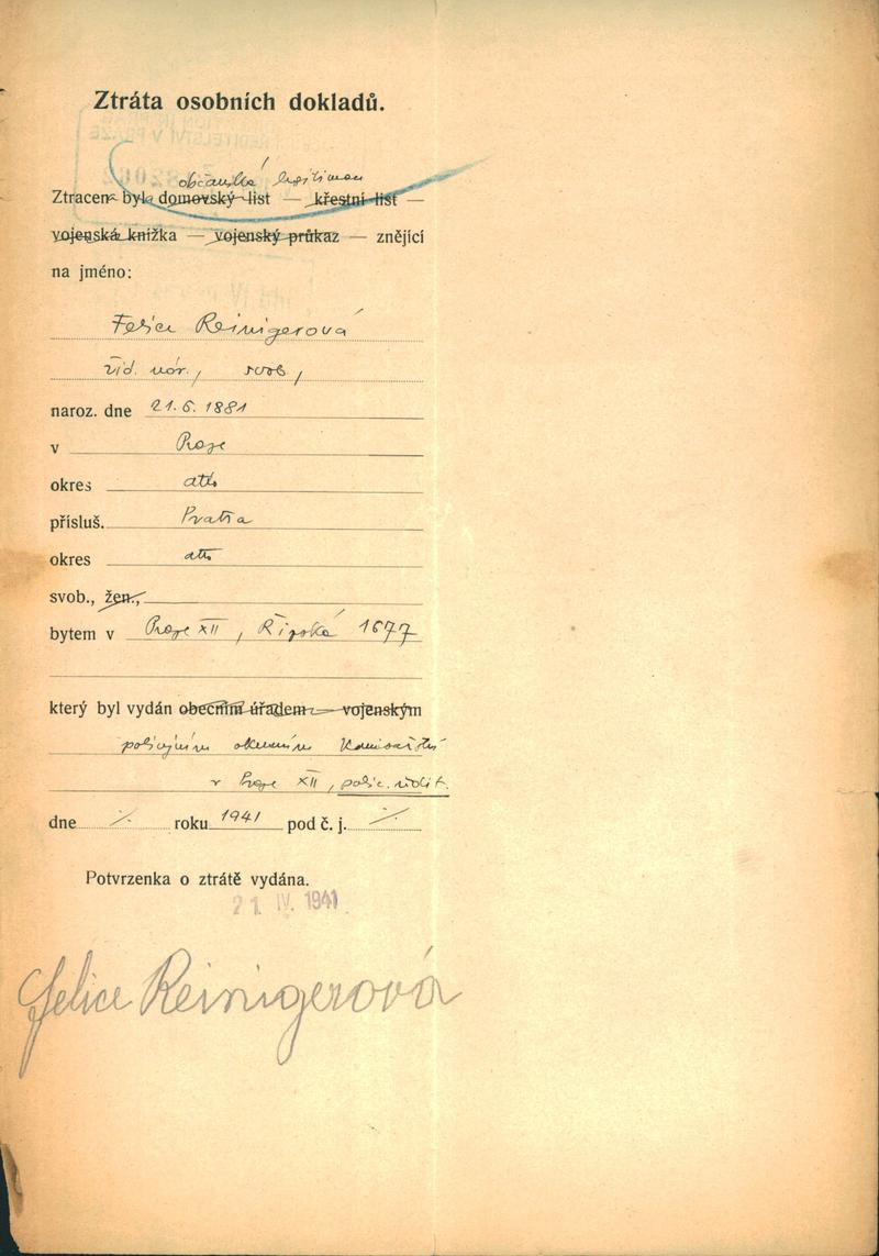 Reinigerová Felice: NEZPRACOVÁNO