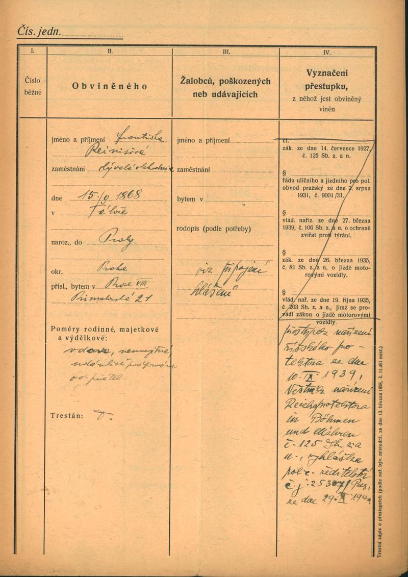 National archives Prague > Police Directorate Prague > 1941-1950 > R > Reinišová Františka