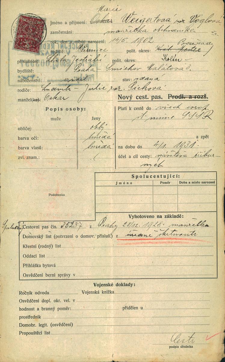 National archives Prague > Police Directorate Prague > 1931-1940 > W > Weigertová Marie