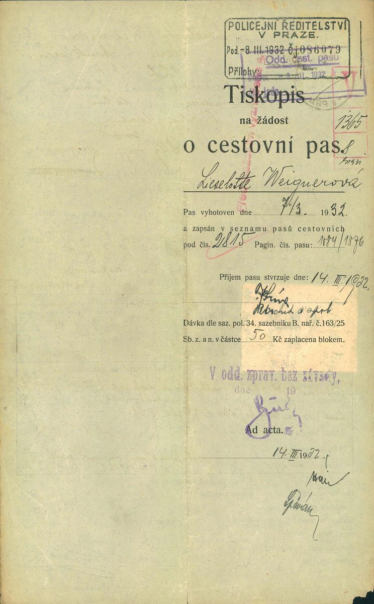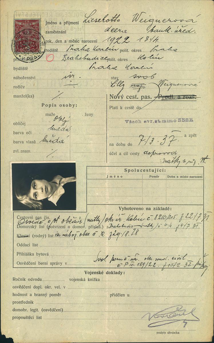 National archives Prague > Police Directorate Prague > 1931-1940 > W > Weignerová Liselotte