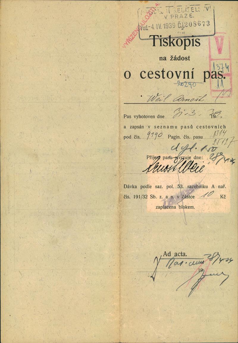 National archives Prague > Police Directorate Prague > 1931-1940 > W > Weil Arnošt