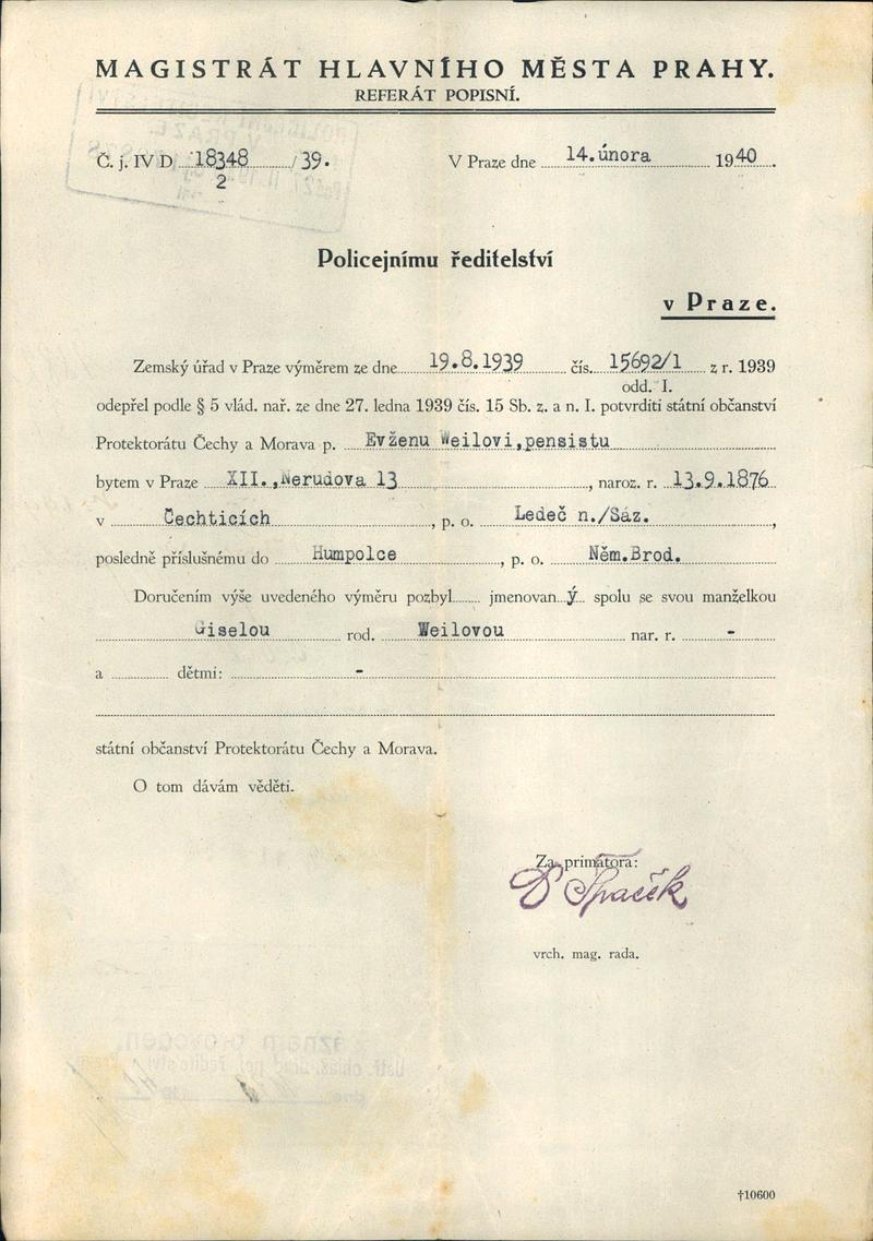 National archives Prague > Police Directorate Prague > 1931-1940 > W > Weil Evžen
