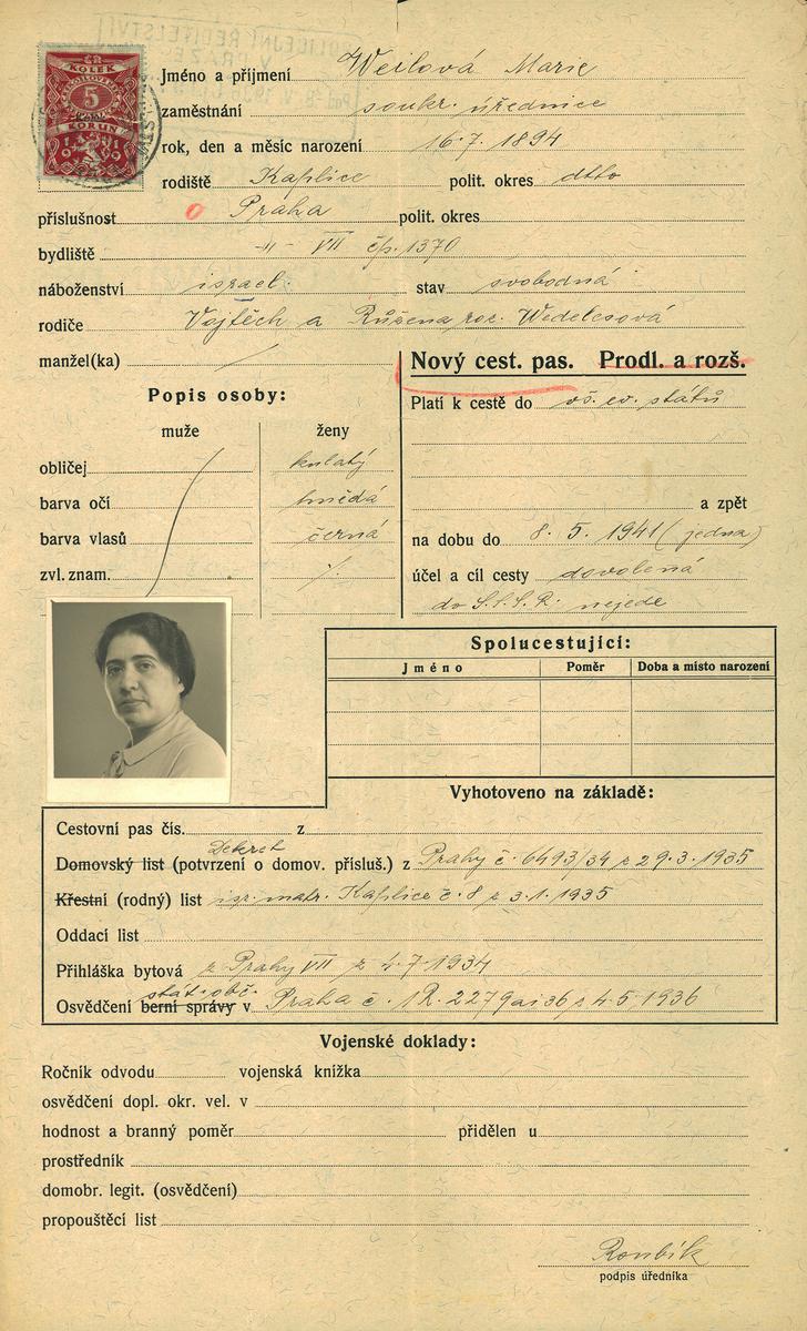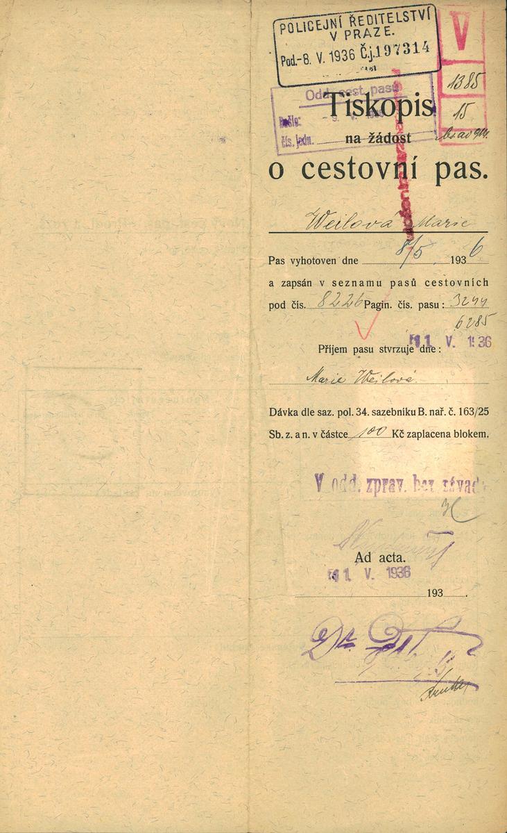 National archives Prague > Police Directorate Prague > 1931-1940 > W > Weilová Marie