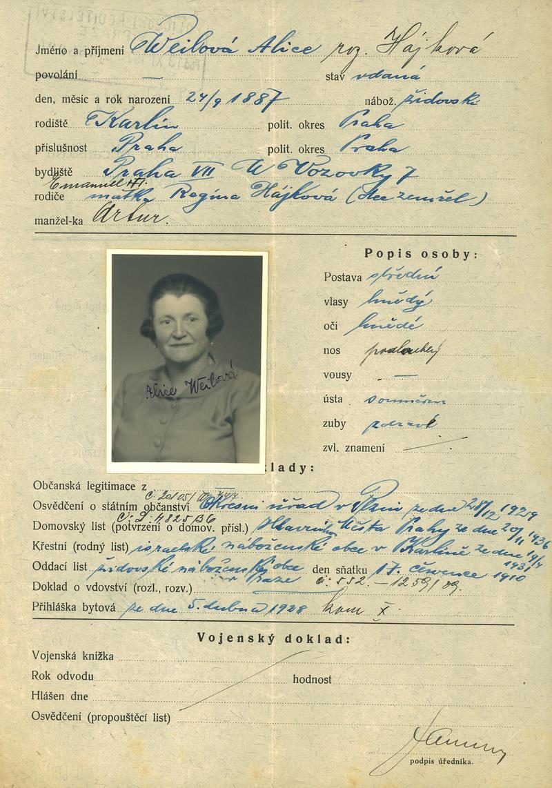National archives Prague > Police Directorate Prague > 1931-1940 > W > Weilová Alice