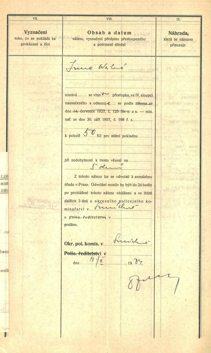 National archives Prague > Police Directorate Prague > 1931-1940 > W > Weilová Irma