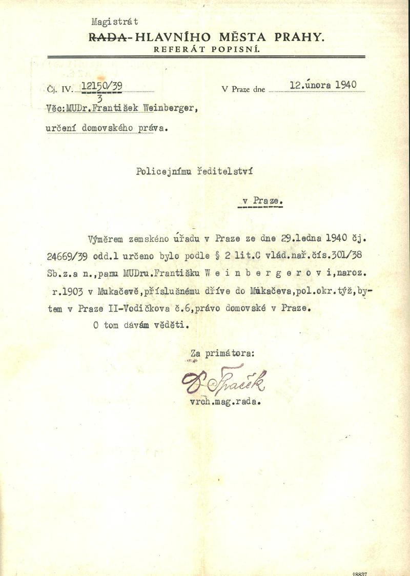 Weinberger František: NEZPRACOVÁNO