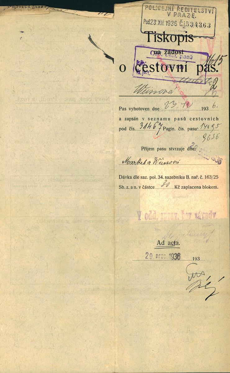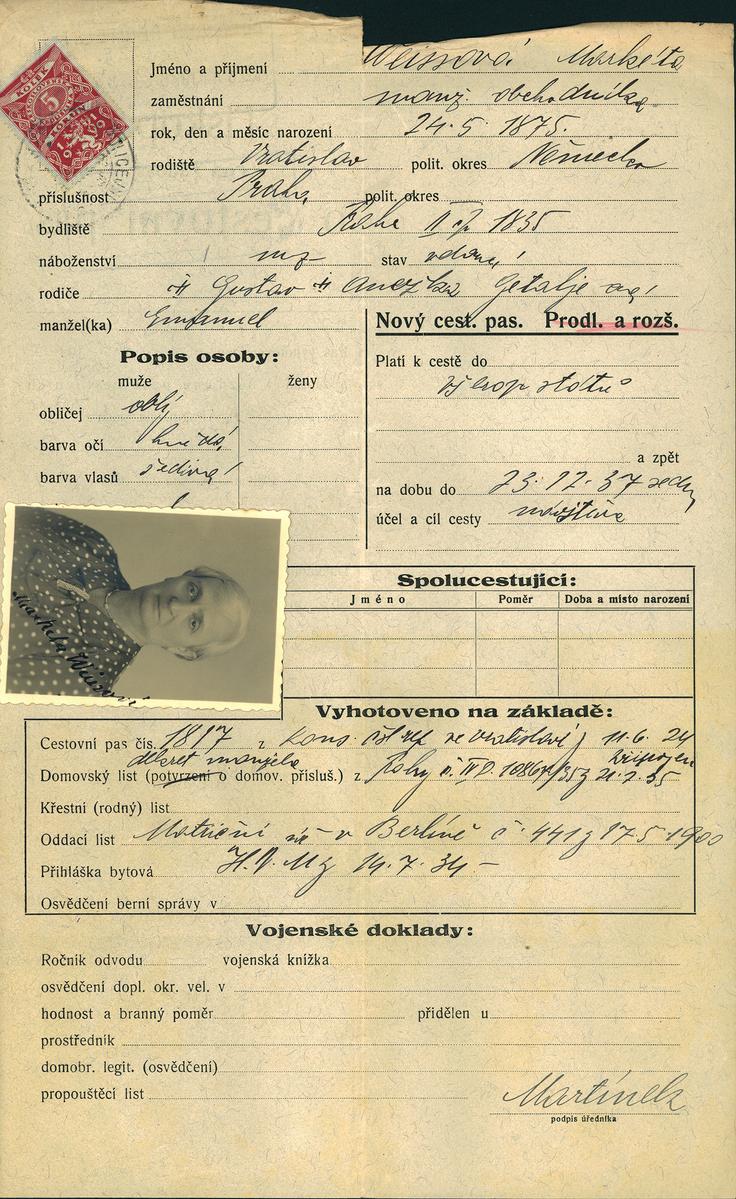 National archives Prague > Police Directorate Prague > 1931-1940 > W > Weissová Markéta