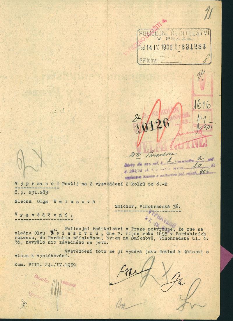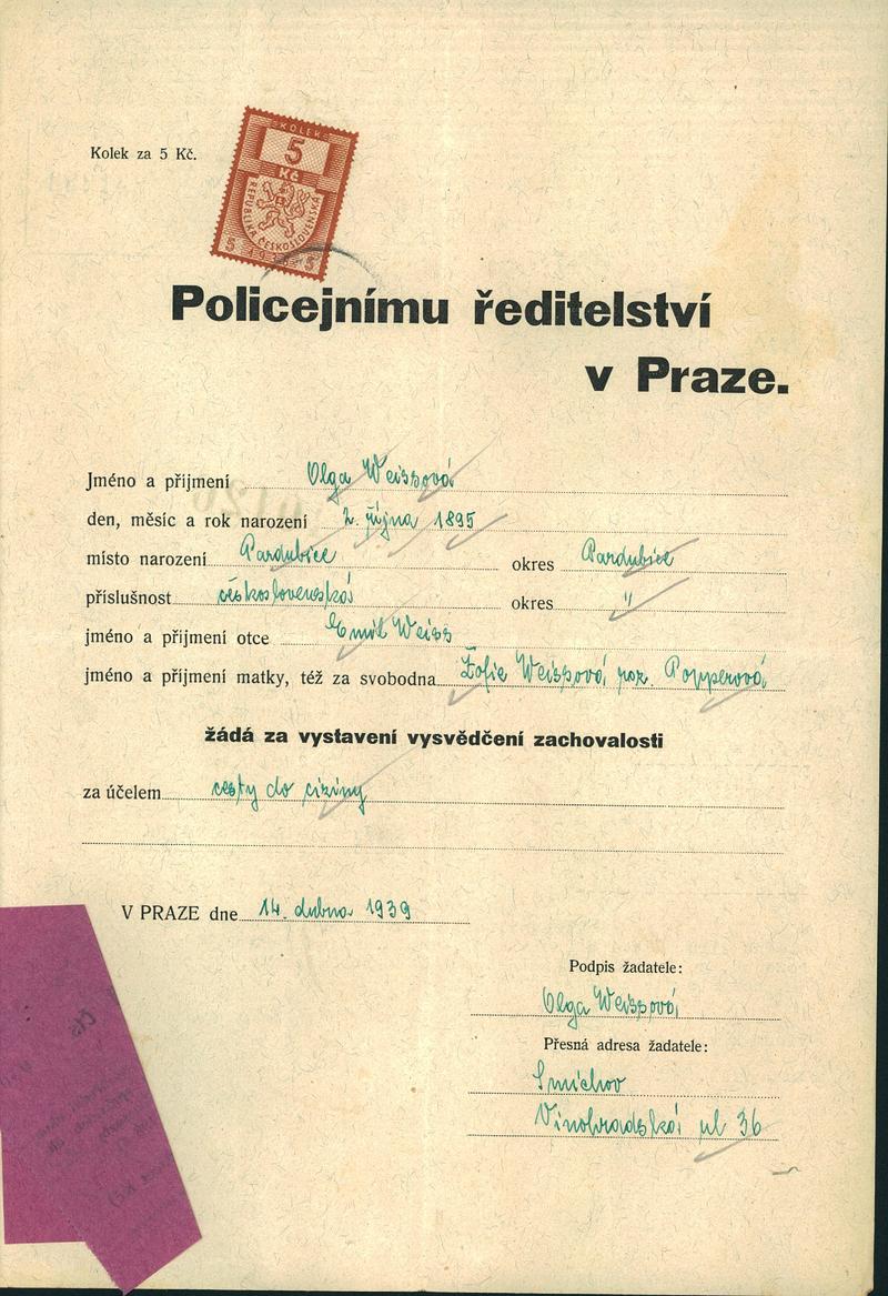 National archives Prague > Police Directorate Prague > 1931-1940 > W > Weissová Olga