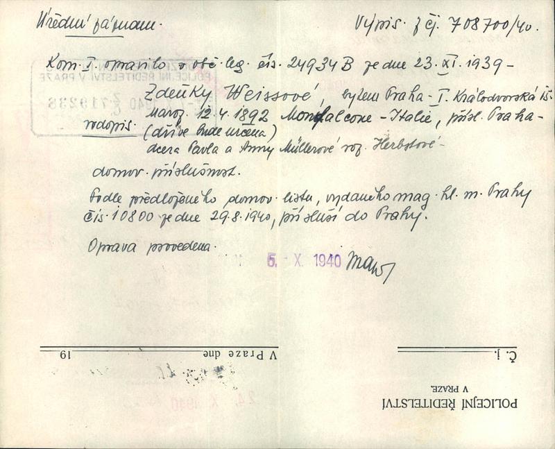 National archives Prague > Police Directorate Prague > 1931-1940 > W > Weissová Zděnka