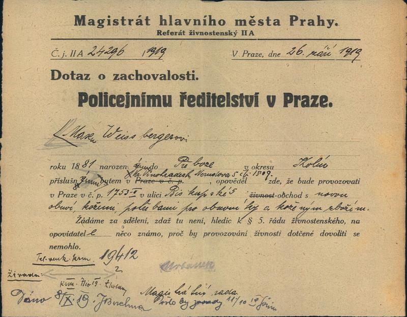 National archives Prague > Police Directorate Prague > 1931-1940 > W > Weissberger Max