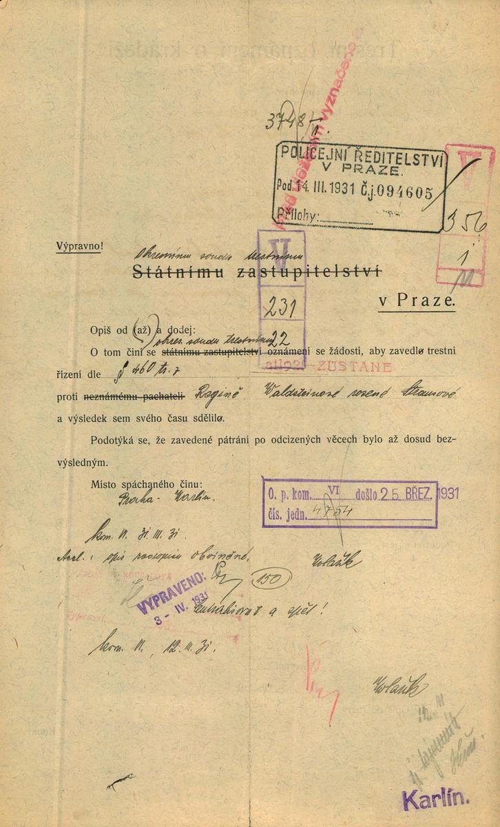 National archives Prague > Police Directorate Prague > 1931-1940 > W > Waldsteinová Regina