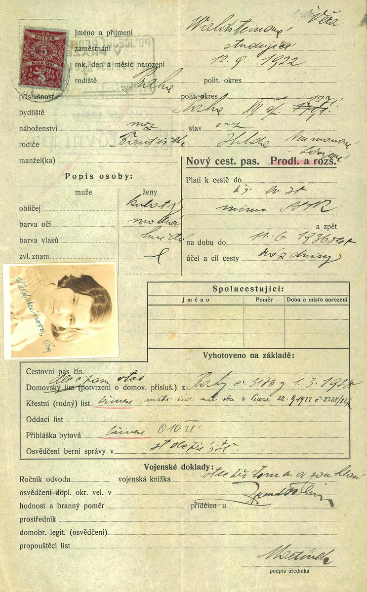 National archives Prague > Police Directorate Prague > 1931-1940 > W > Waldsteinová Věra