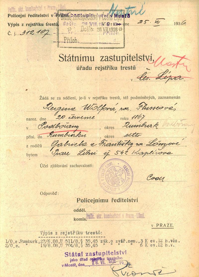 National archives Prague > Police Directorate Prague > 1931-1940 > W > Wolfová Regina