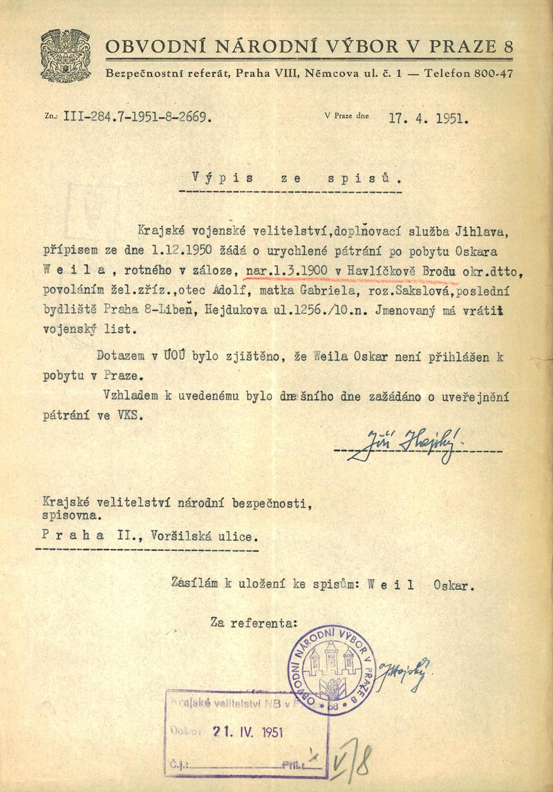 National archives Prague > Police Directorate Prague > 1941-1950 > W > Weil Oskar