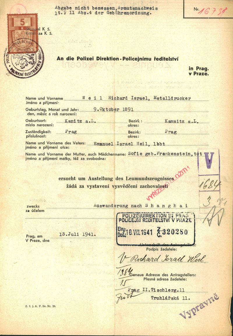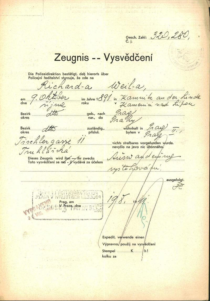 National archives Prague > Police Directorate Prague > 1941-1950 > W > Weil Richard