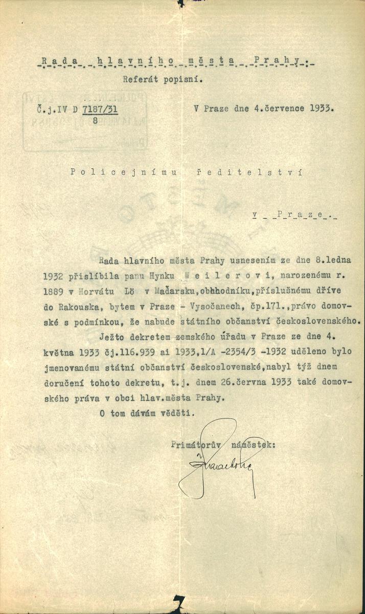Weiler Hynek: NEZPRACOVÁNO