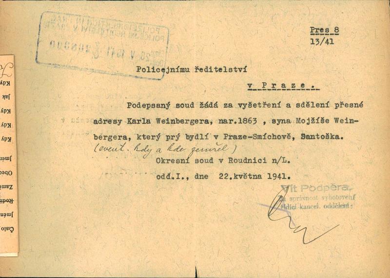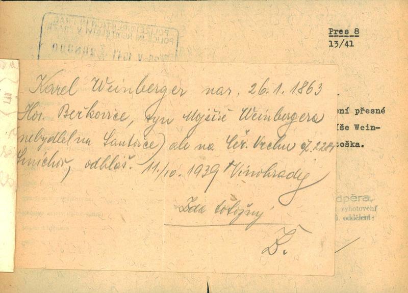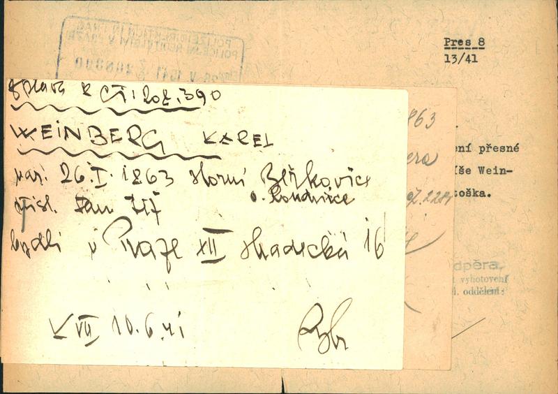 National archives Prague > Police Directorate Prague > 1941-1950 > W > Weinberg Karel
