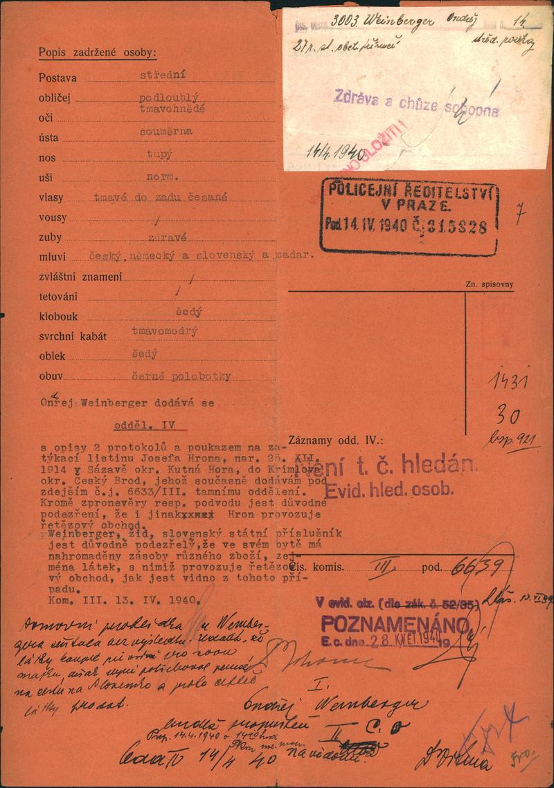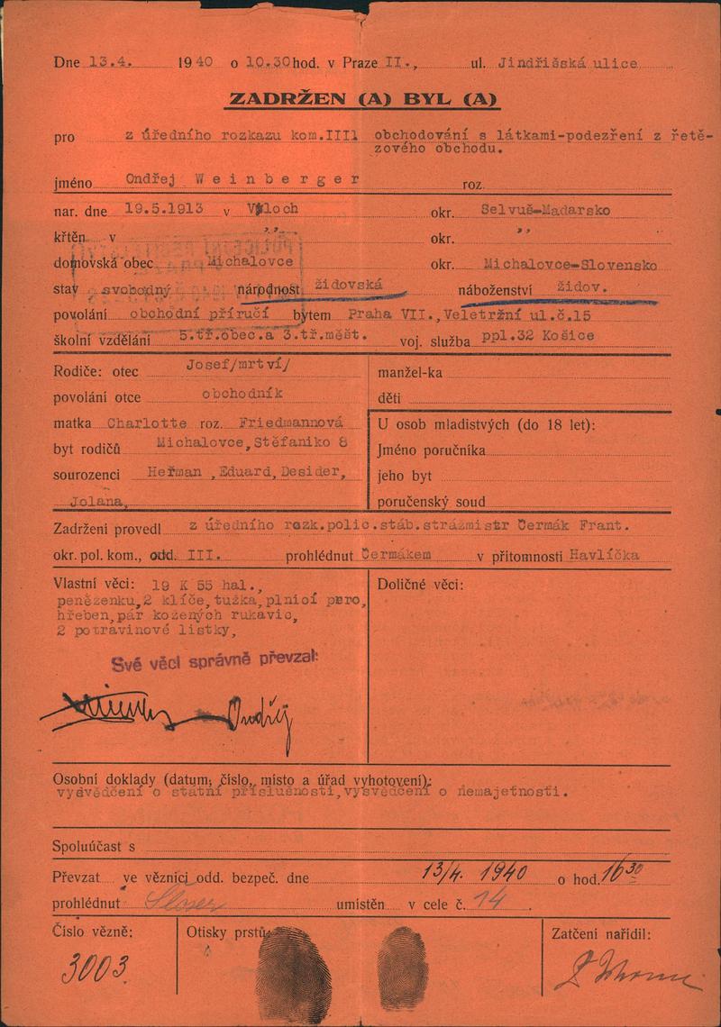 National archives Prague > Police Directorate Prague > 1941-1950 > W > Weinberger Ondřej