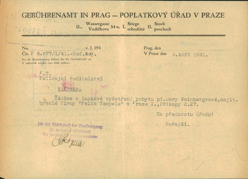 National archives Prague > Police Directorate Prague > 1941-1950 > W > Weinbergerová Bohdanka