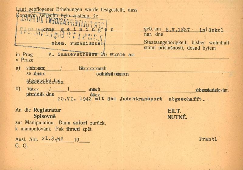 This database contains the names and fates of those who were deported from the territory of today’s Czech Republic, be it their homeland or may they have been deported to the Theresienstadt ghetto before from different european countries. Further, it contains basic information on those men, women and children, most of whom were Roma or Sinti, who died as prisoners of the so-called „Gypsy camp I“ Lety u Písku.