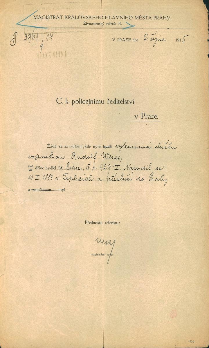 National archives Prague > Police Directorate Prague > 1941-1950 > W > Weiss Rudolf