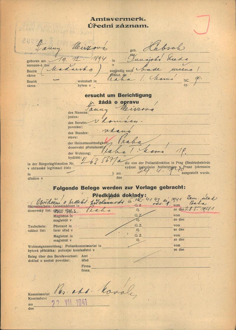 National archives Prague > Police Directorate Prague > 1941-1950 > W > Weiszová Františka