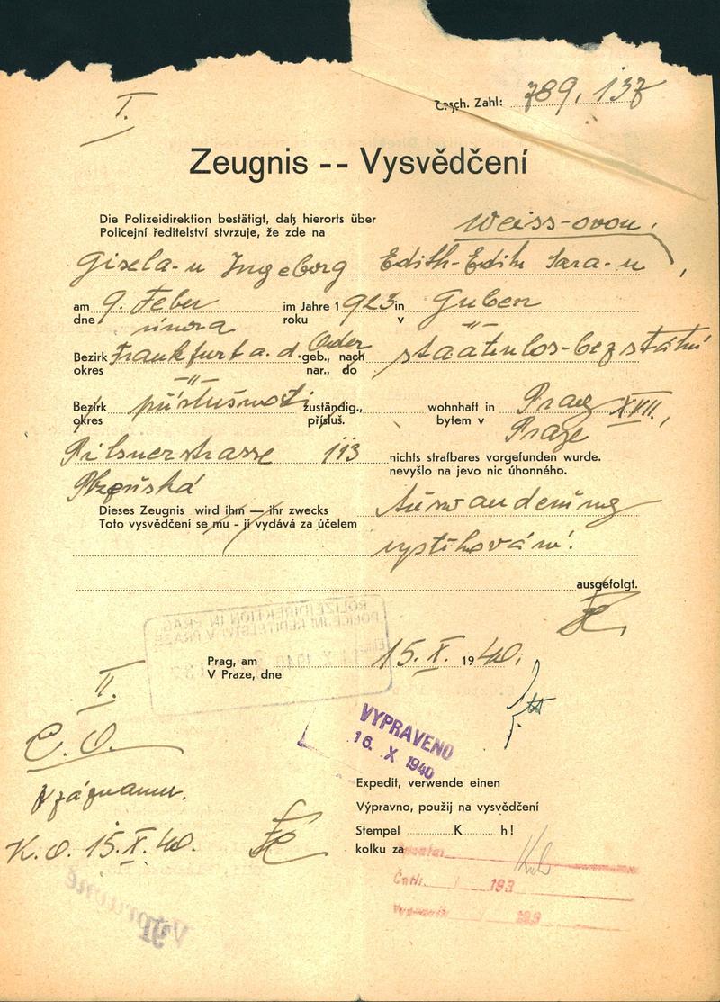 This database contains the names and fates of those who were deported from the territory of today’s Czech Republic, be it their homeland or may they have been deported to the Theresienstadt ghetto before from different european countries. Further, it contains basic information on those men, women and children, most of whom were Roma or Sinti, who died as prisoners of the so-called „Gypsy camp I“ Lety u Písku.