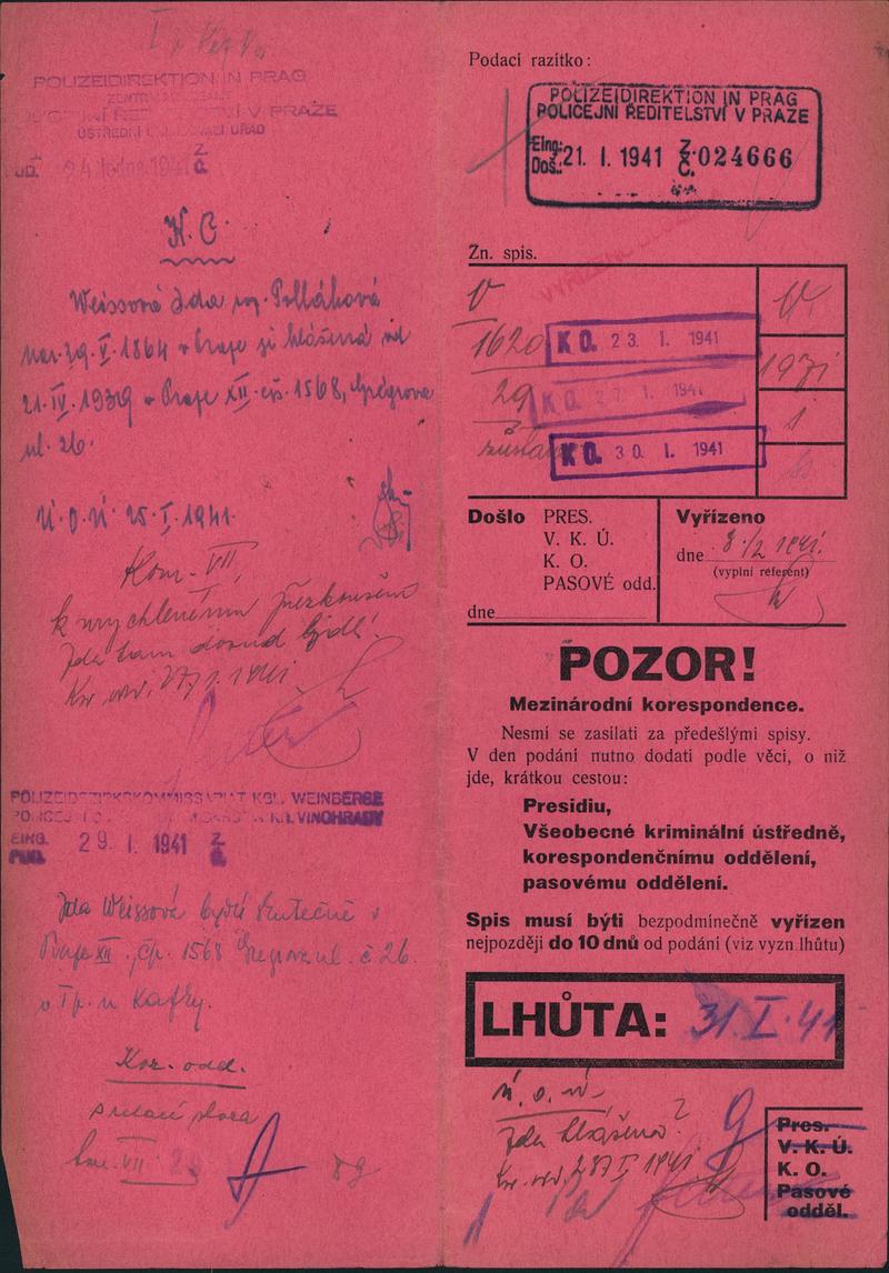 National archives Prague > Police Directorate Prague > 1941-1950 > W > Weissová Ida