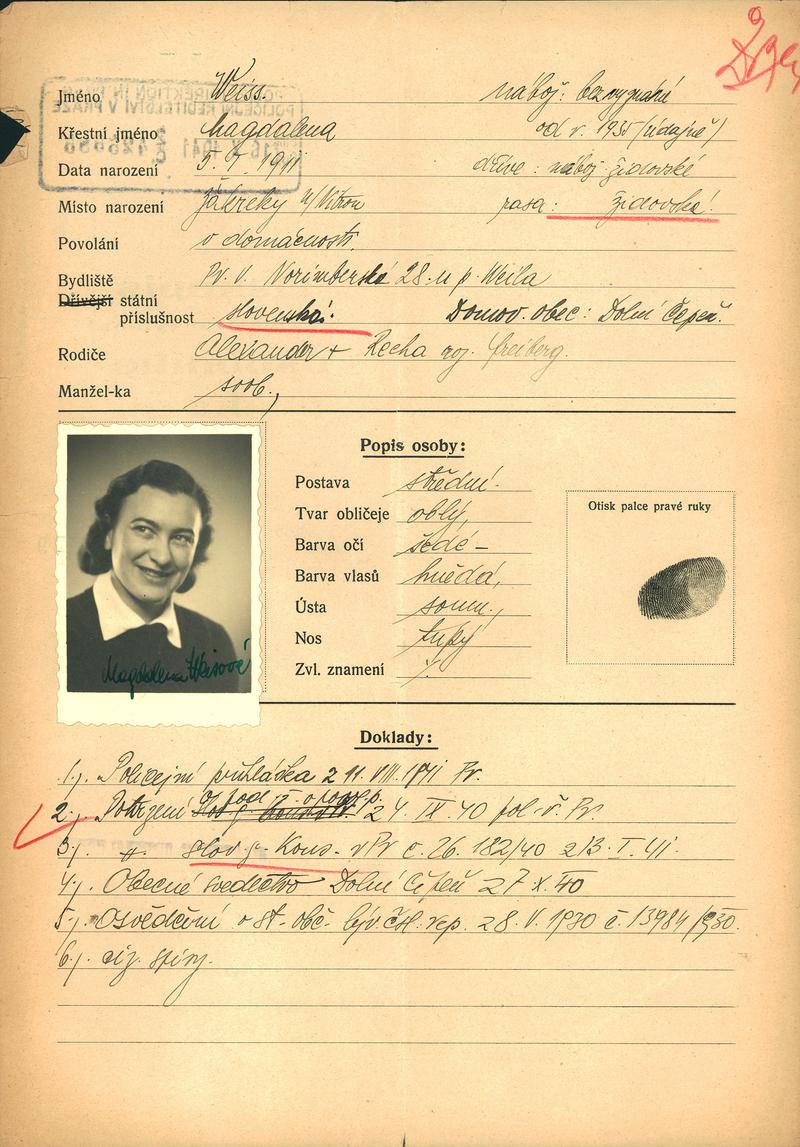 National archives Prague > Police Directorate Prague > 1941-1950 > W > Weissová Magdalena