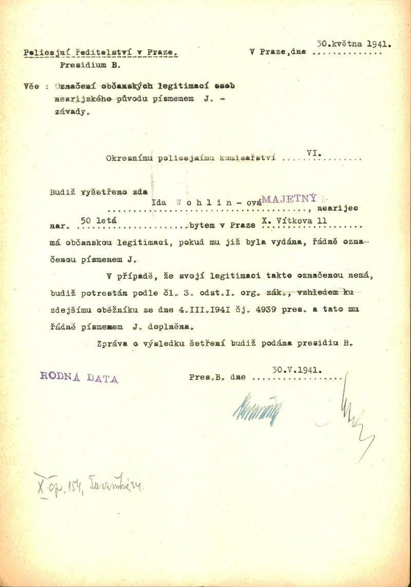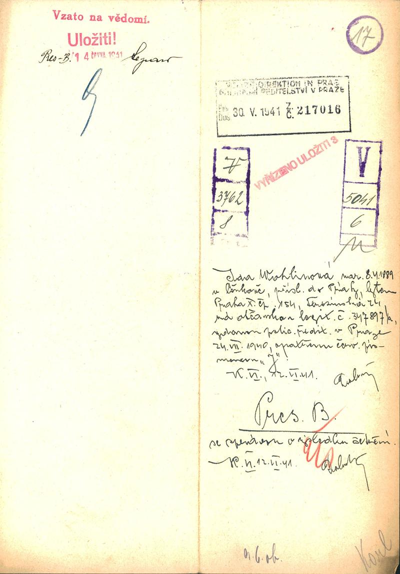 National archives Prague > Police Directorate Prague > 1941-1950 > W > Wohlinová Ida
