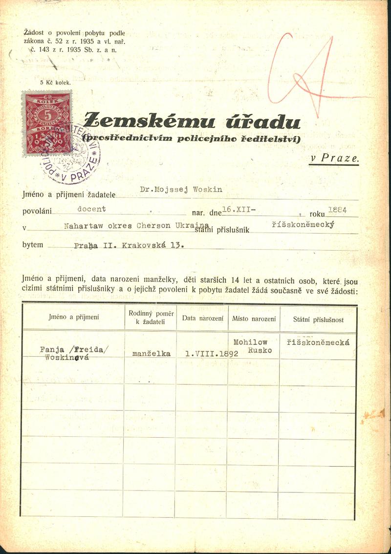 National archives Prague > Police Directorate Prague > 1941-1950 > W > Woskin Mojžíš
