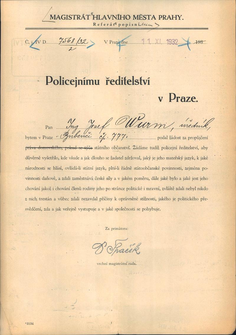 National archives Prague > Police Directorate Prague > 1941-1950 > W > Wurm Josef