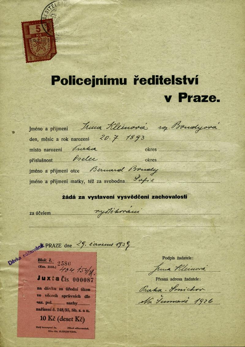 National archives Prague > Police Directorate Prague > 1931-1940 > K > Kleinová Irma