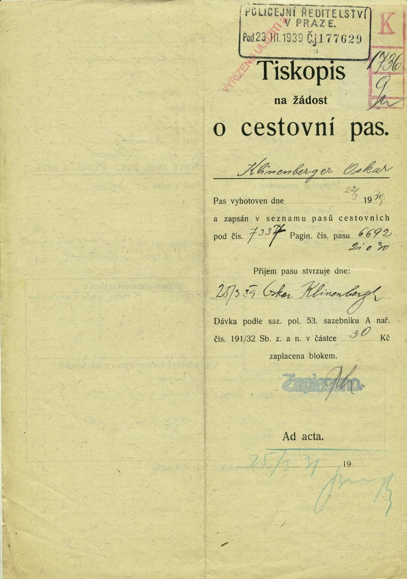 Klinenberger Oskar: NEZPRACOVÁNO