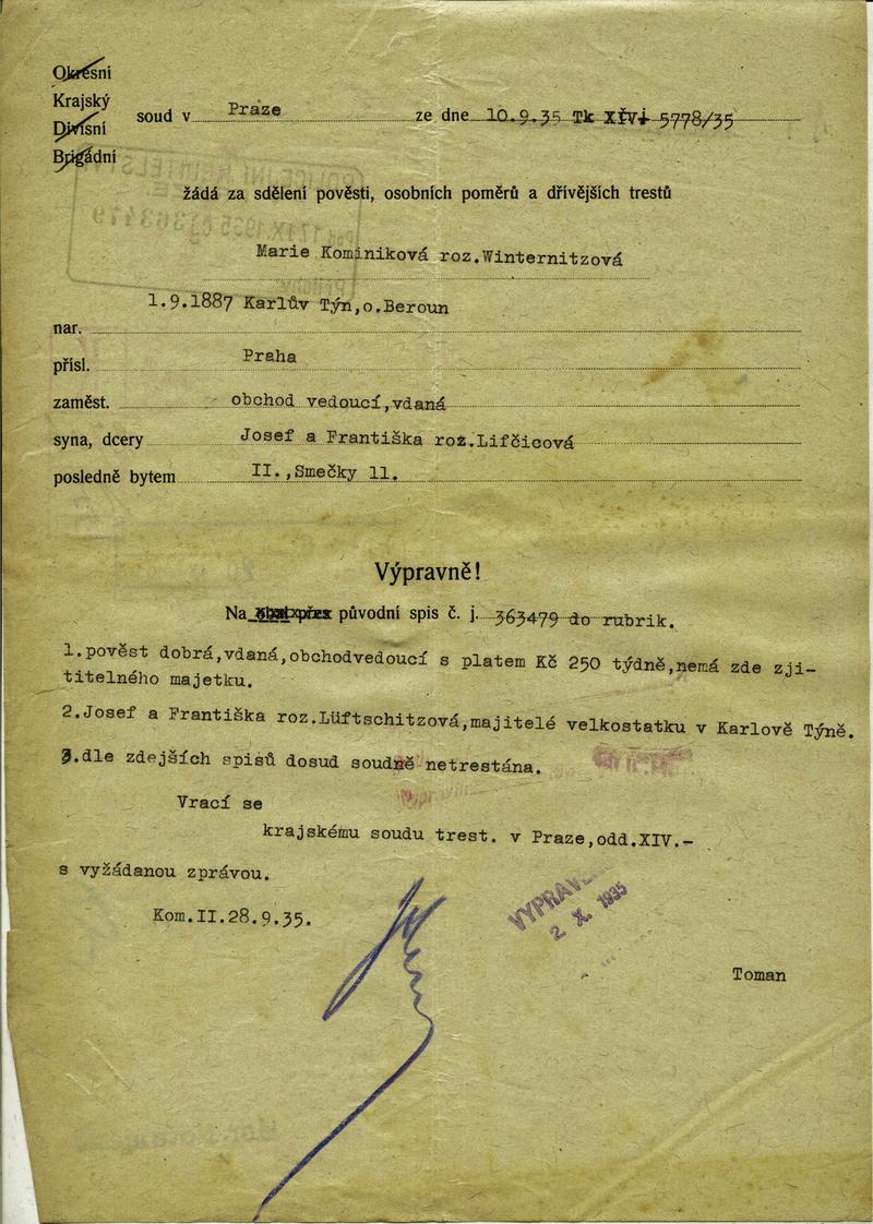 Kominiková Marie: NEZPRACOVÁNO