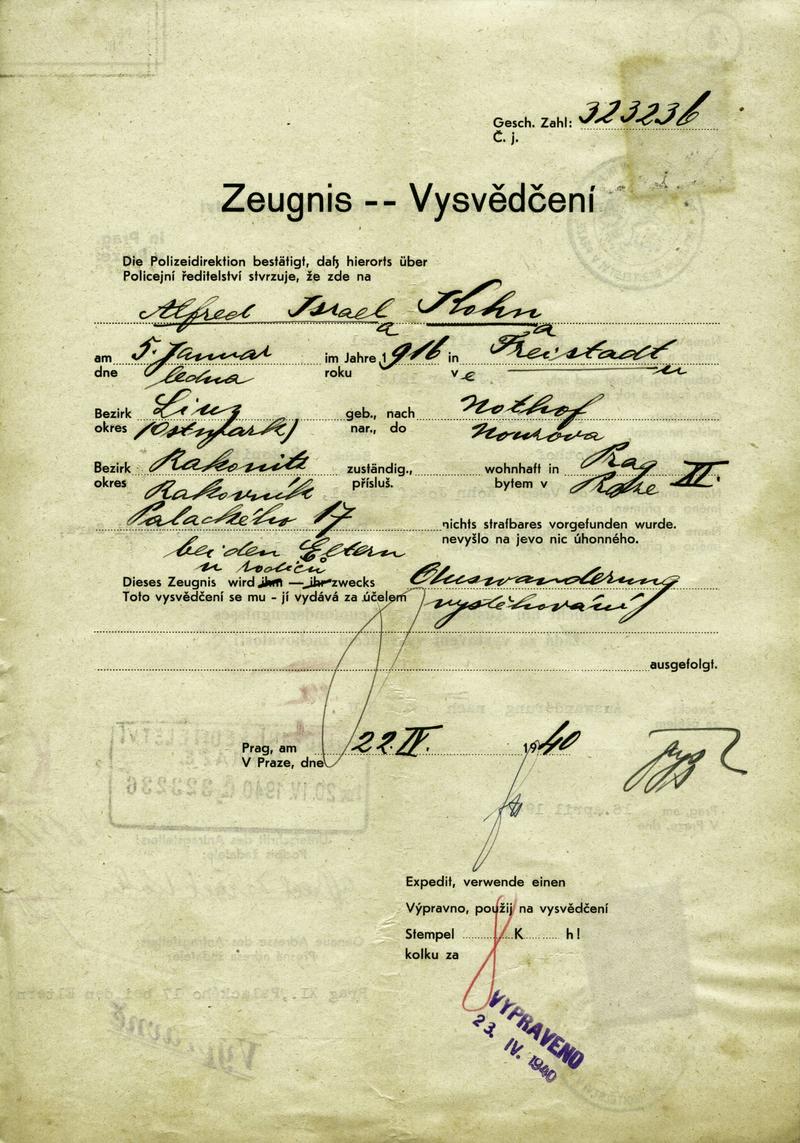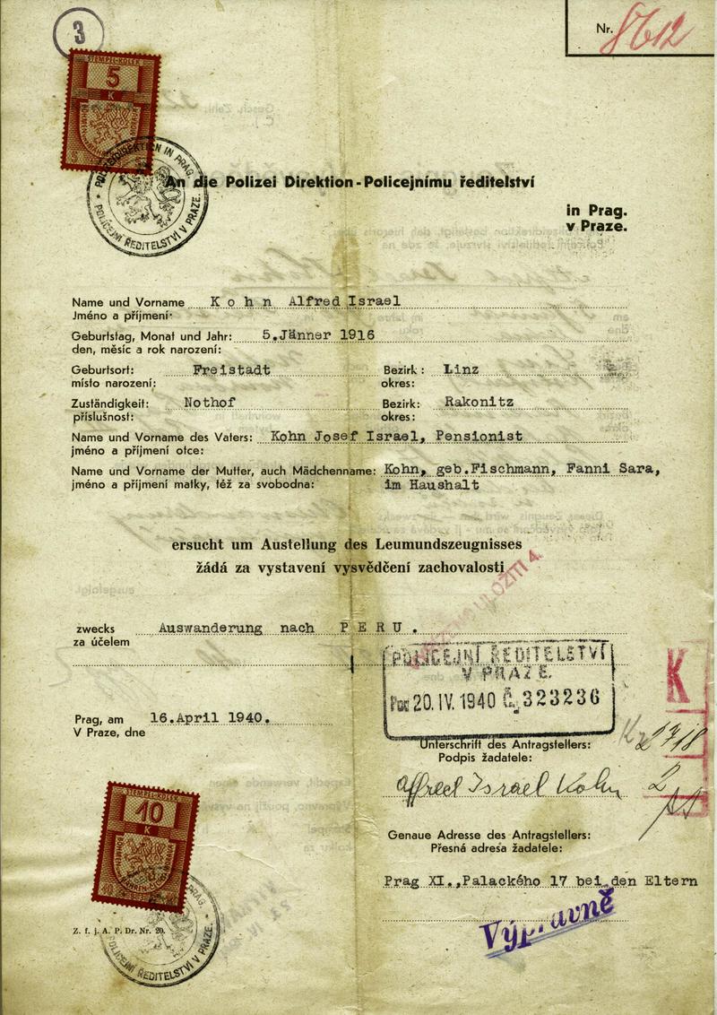 National archives Prague > Police Directorate Prague > 1931-1940 > K > Kohn Alfred