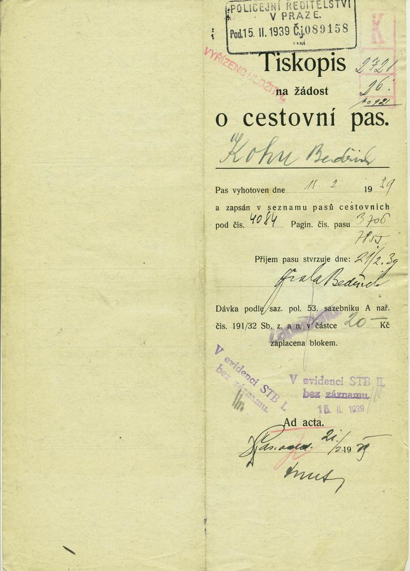 National archives Prague > Police Directorate Prague > 1931-1940 > K > Kohn Bedřich