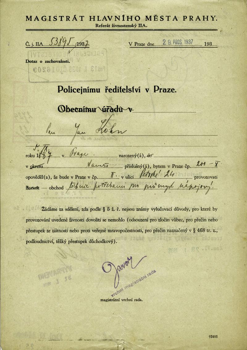 National archives Prague > Police Directorate Prague > 1931-1940 > K > Kohn Jan