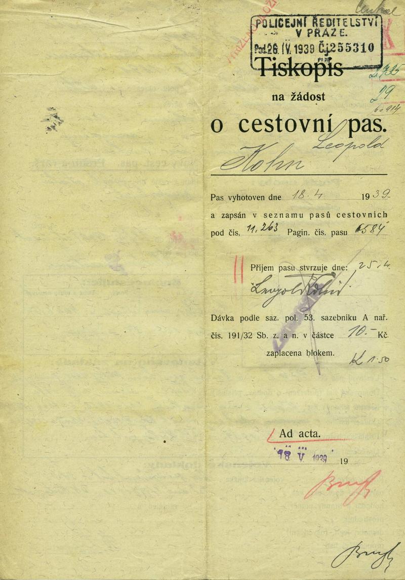 National archives Prague > Police Directorate Prague > 1931-1940 > K > Kohn Leopold
