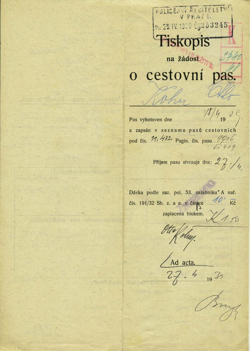 National archives Prague > Police Directorate Prague > 1931-1940 > K > Kohn Otto