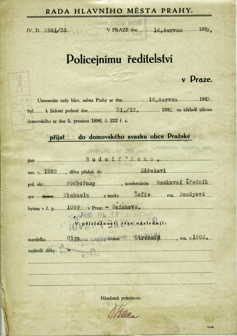National archives Prague > Police Directorate Prague > 1931-1940 > K > Kohn Rudolf