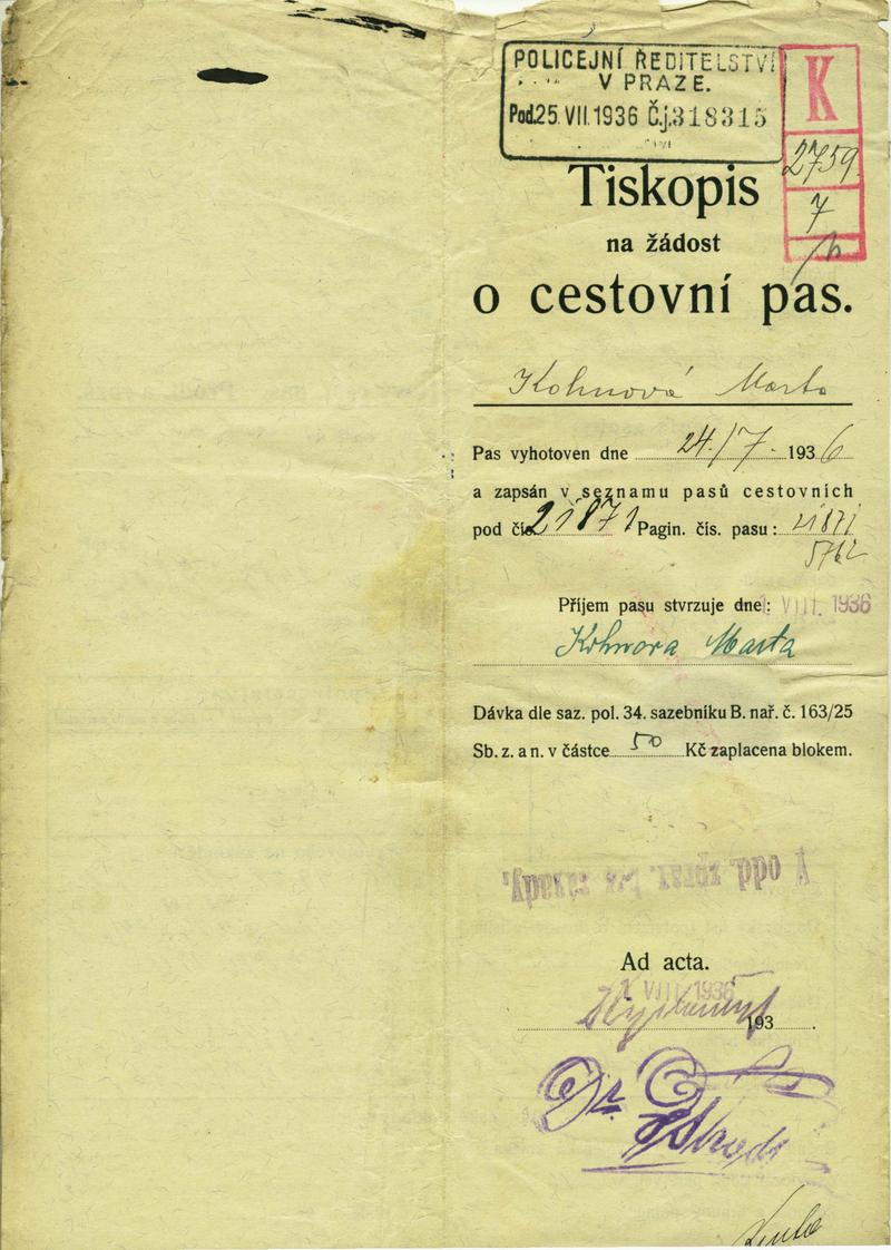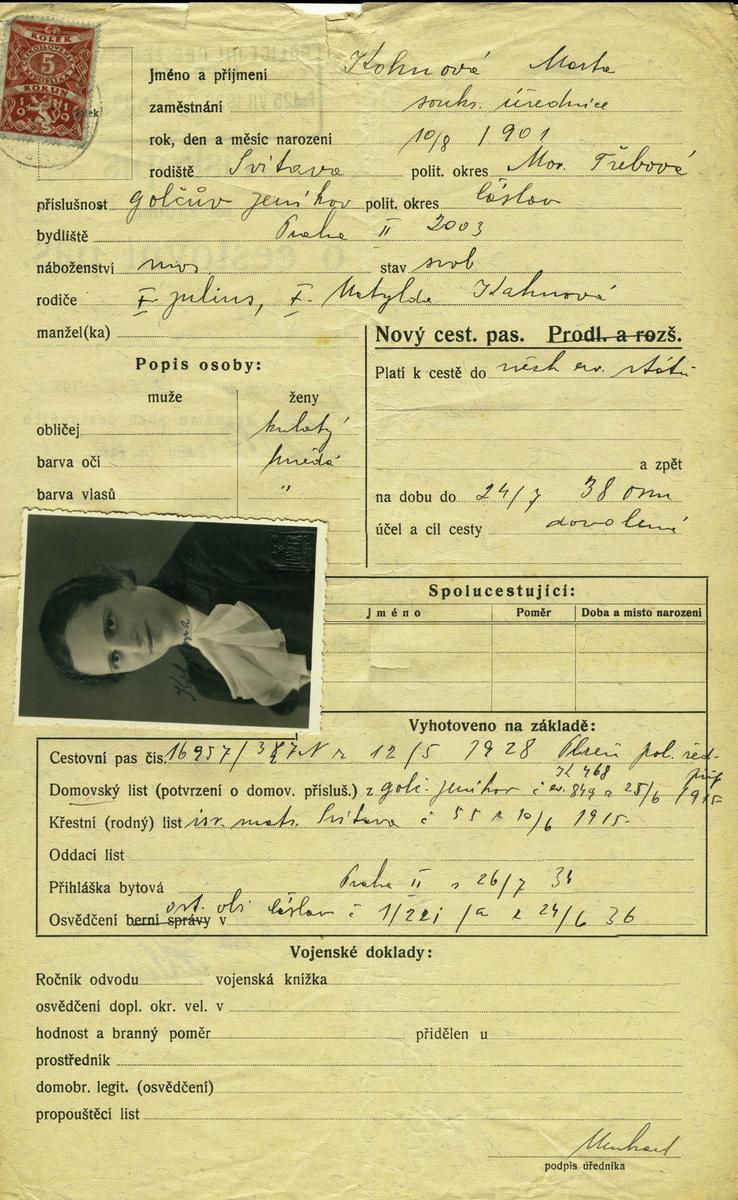 National archives Prague > Police Directorate Prague > 1931-1940 > K > Kohnová Marta