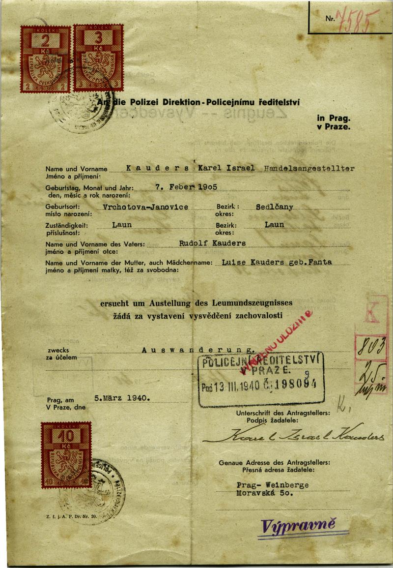 National archives Prague > Police Directorate Prague > 1931-1940 > K > Kauders Karel