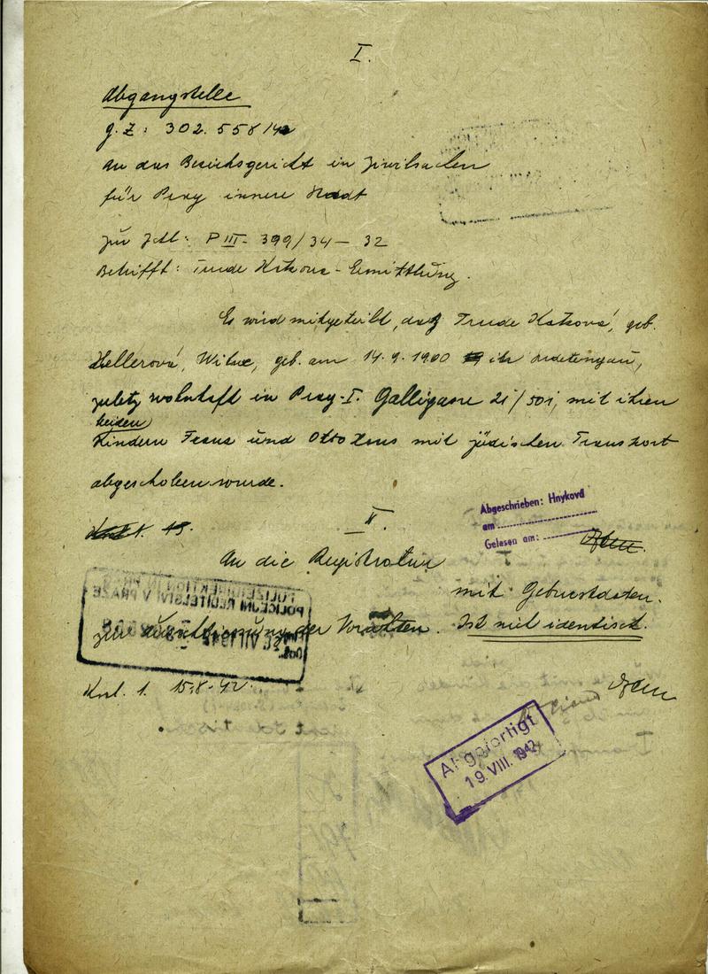 Katzová Gertruda: NEZPRACOVÁNO