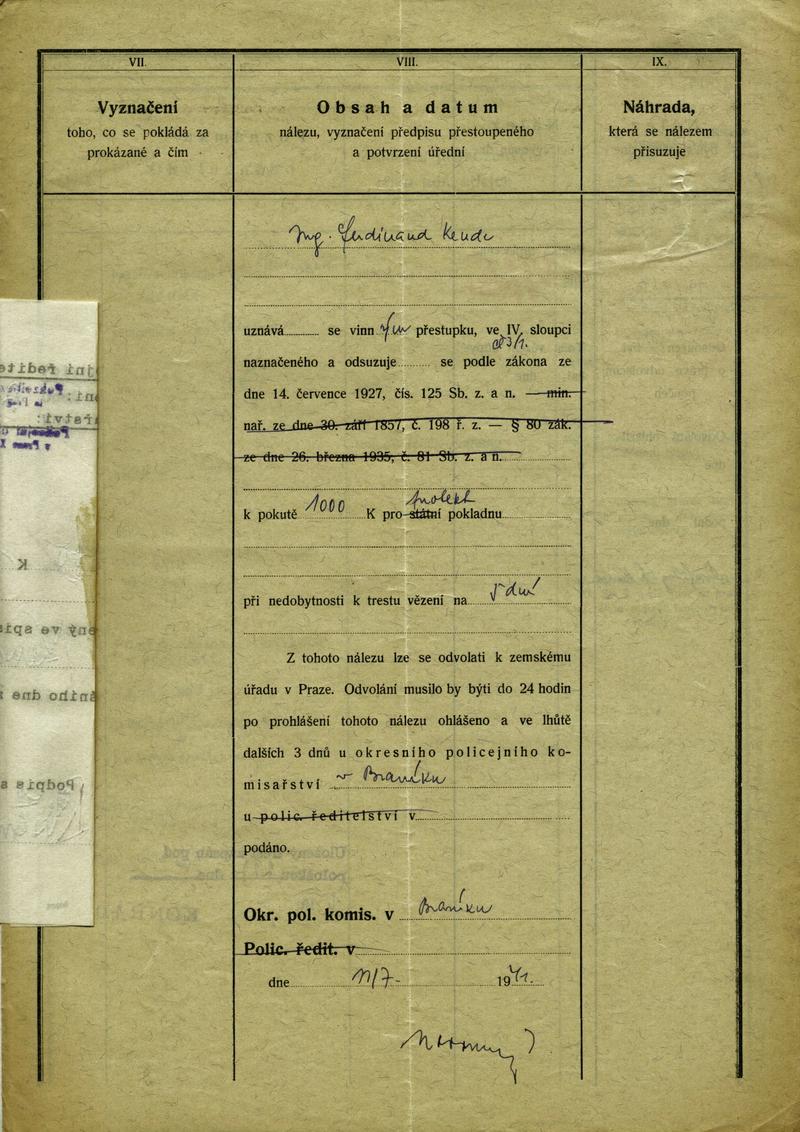National archives Prague > Police Directorate Prague > 1941-1950 > K > Kende Ferdinand