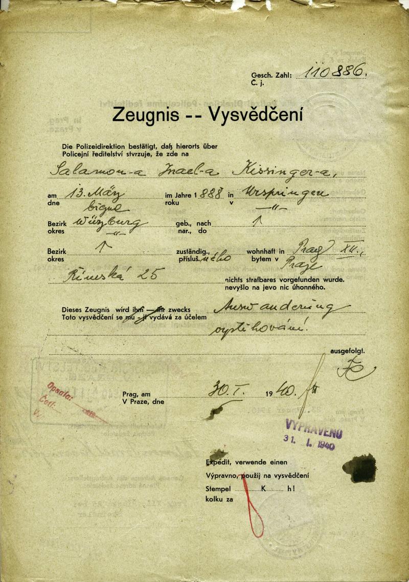 National archives Prague > Police Directorate Prague > 1941-1950 > K > Kissinger Šalomoun