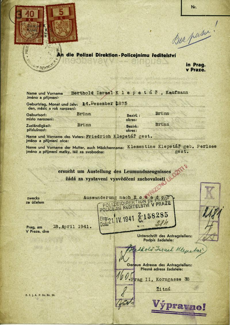 National archives Prague > Police Directorate Prague > 1941-1950 > K > Klepetař Berthold
